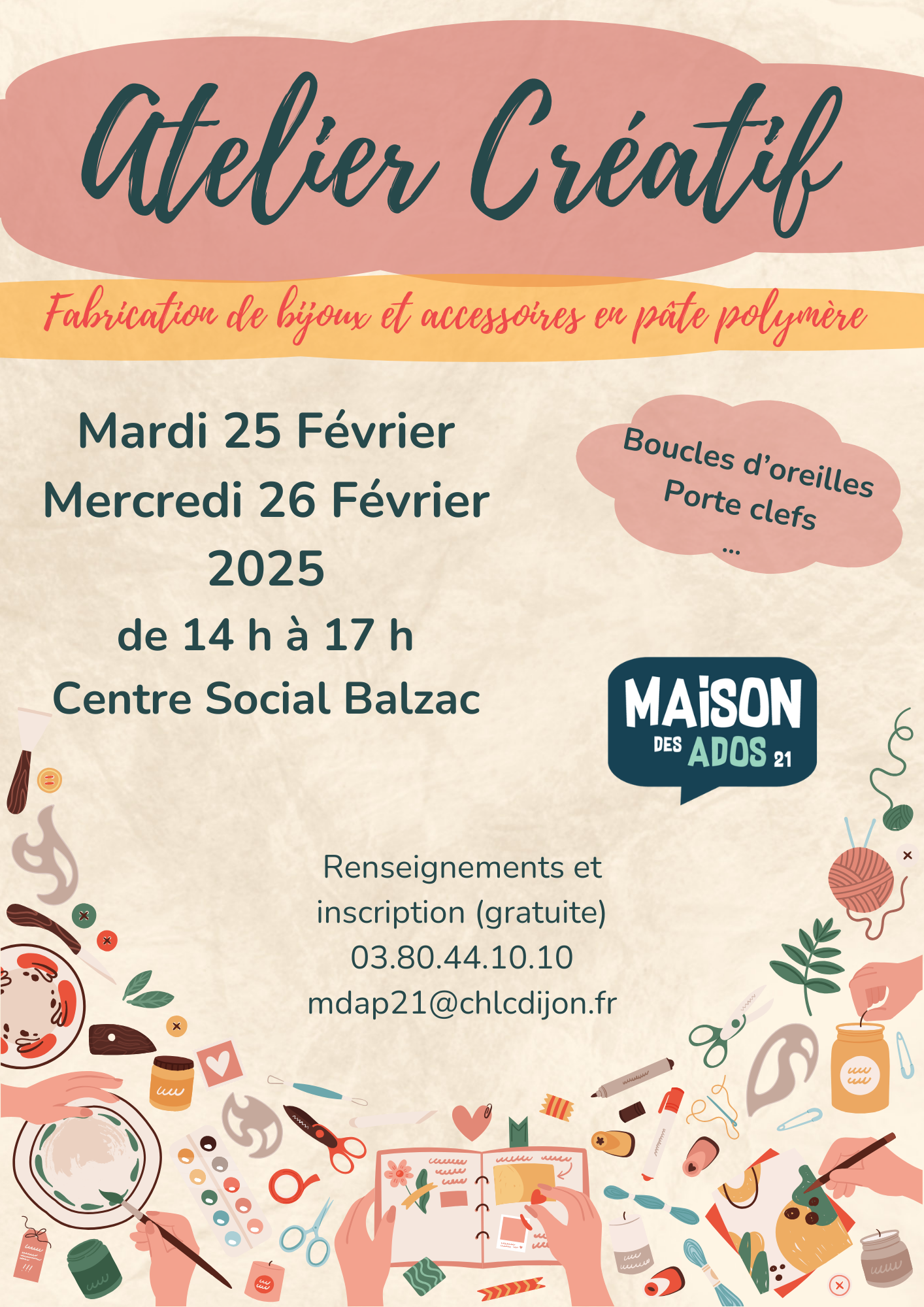 - Atelier Arts Créatifs- Mardi 25 et mercredi 26 février 2025 (première semaine des vacances scolaires)